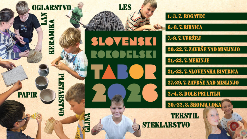 Člani Konzorcija rokodelskih centrov Slovenije med poletnimi počitnicami peto leto zapored organizirajo Slovenski rokodelski tabor 2026. V različnih krajih po Sloveniji se bodo odvili rokodelski tabori, ki so namenjeni mladim med 12 in 17 leti. Vabimo vas k rokodelskemu ustvarjanju in druženju z vrstniki! (seznam in termini so navedeni spodaj ter v prijavnici).